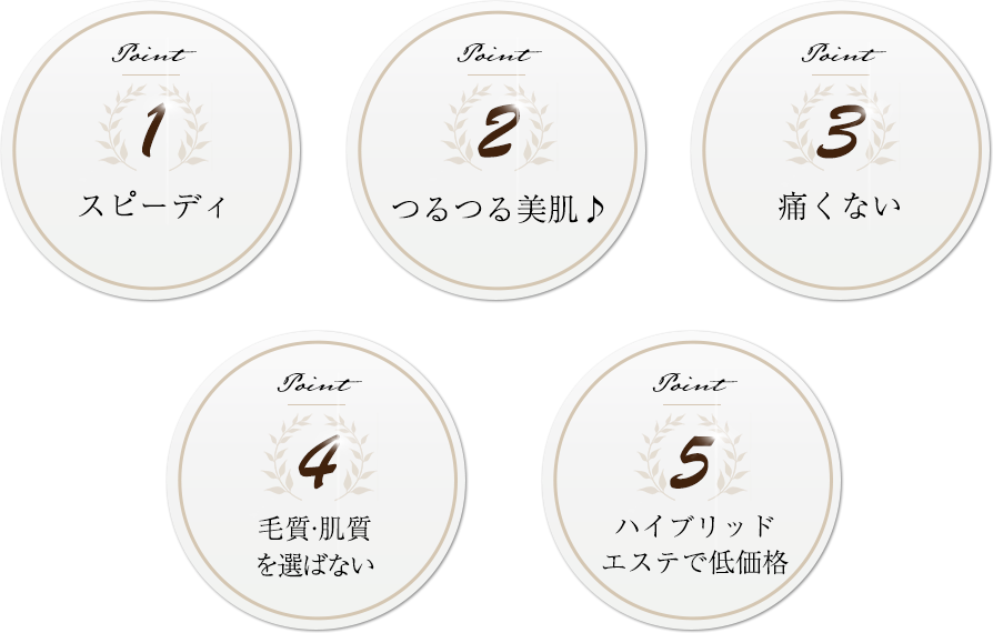従来は日焼け黒ズミなど、お肌によっては脱毛をお受けできないこともありました。”最先端脱毛器”の新しい除毛方法により、日焼け・黒ズミにも脱毛が可能になりました。